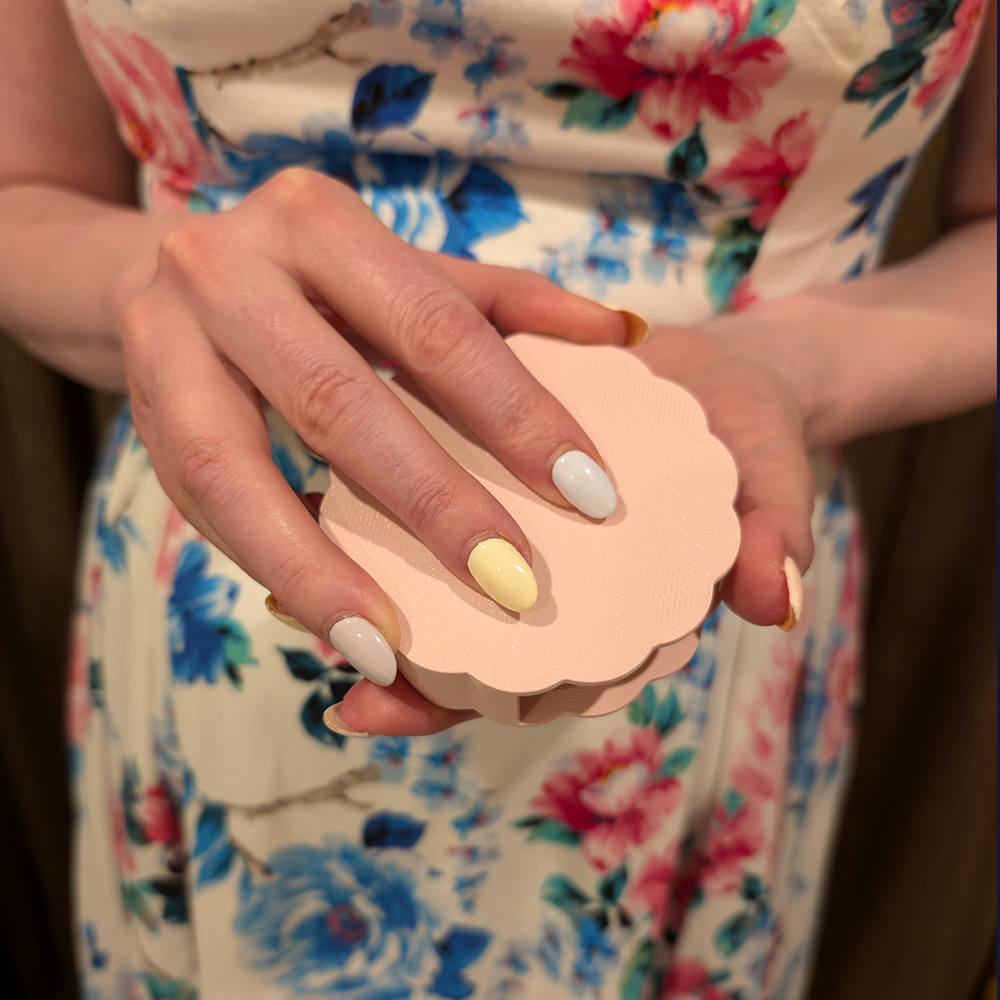 The belt reel contains two parts – the base, which has with two sides, and the lid, with no sides.